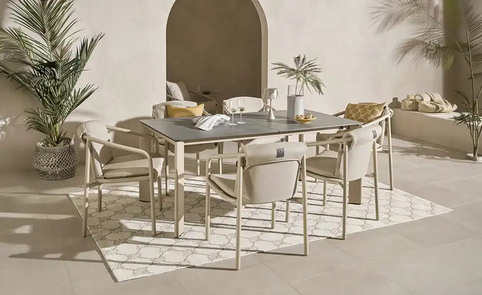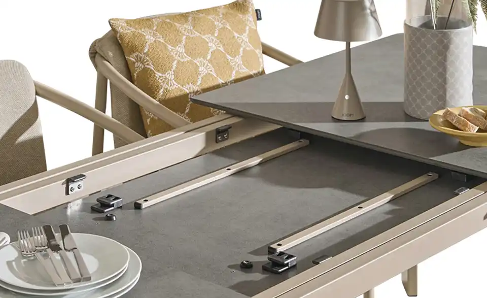 - Beiges Gestell aus Aluminium und Polycarbonat