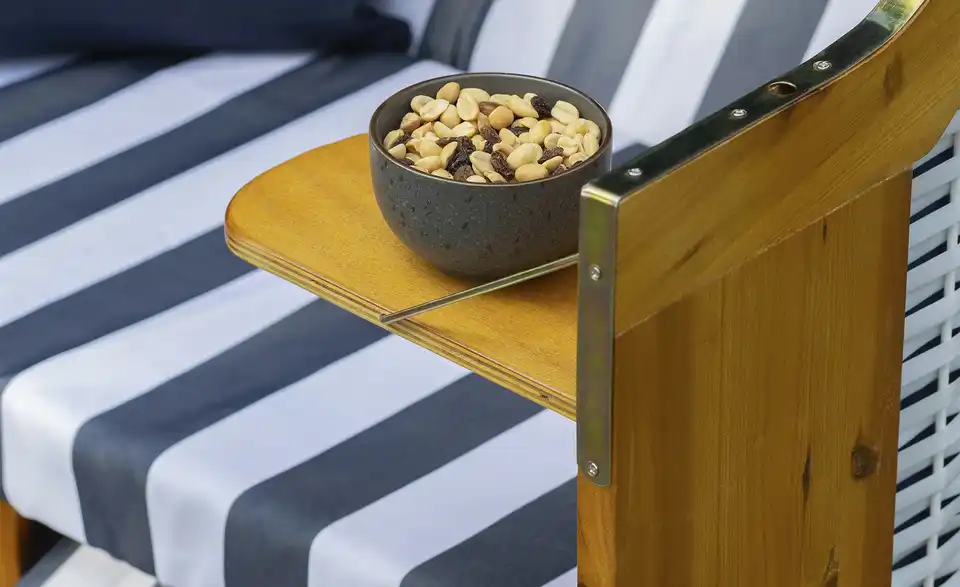 - Lieferumfang / mitgeliefertes ZubehörAusziehbare FußablagenMarkise2 Klapptische2 Nackenrollen2 Extrakissen