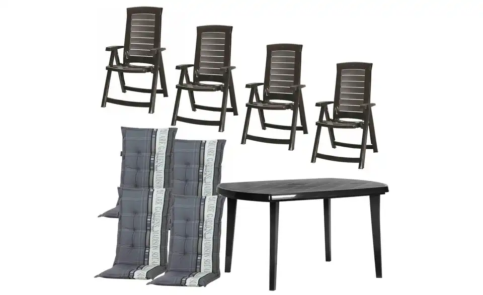 - Lieferumfang / mitgeliefertes Zubehör4 x Klappsessel, 4 x Auflagen, 1 x Elise Tisch