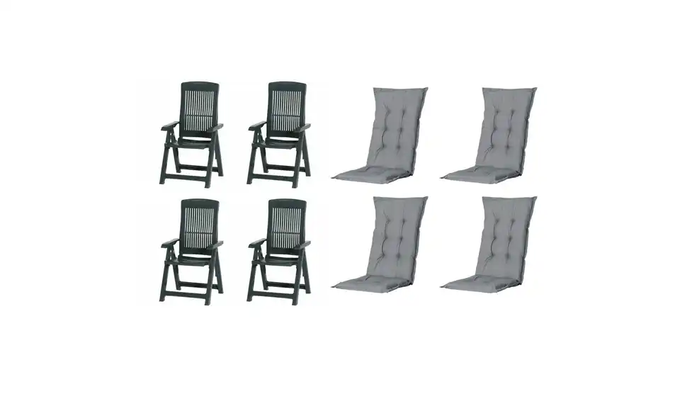 - Lieferumfang / mitgeliefertes Zubehör4 x Klappsessel grün, 4 x Auflage grau
