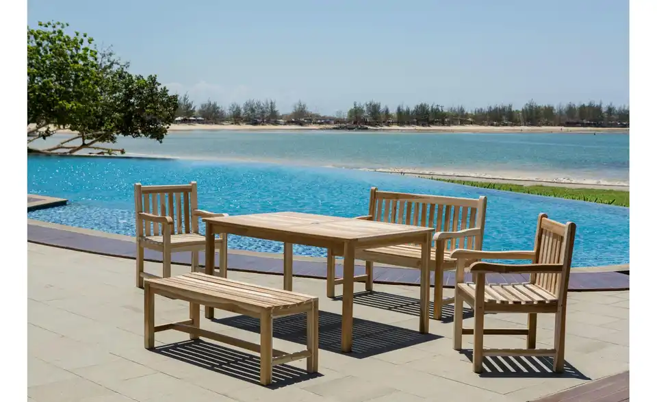 - Lieferumfang / mitgeliefertes Zubehör2 Armlehnstühle, 2 Bänke, 1 Tisch