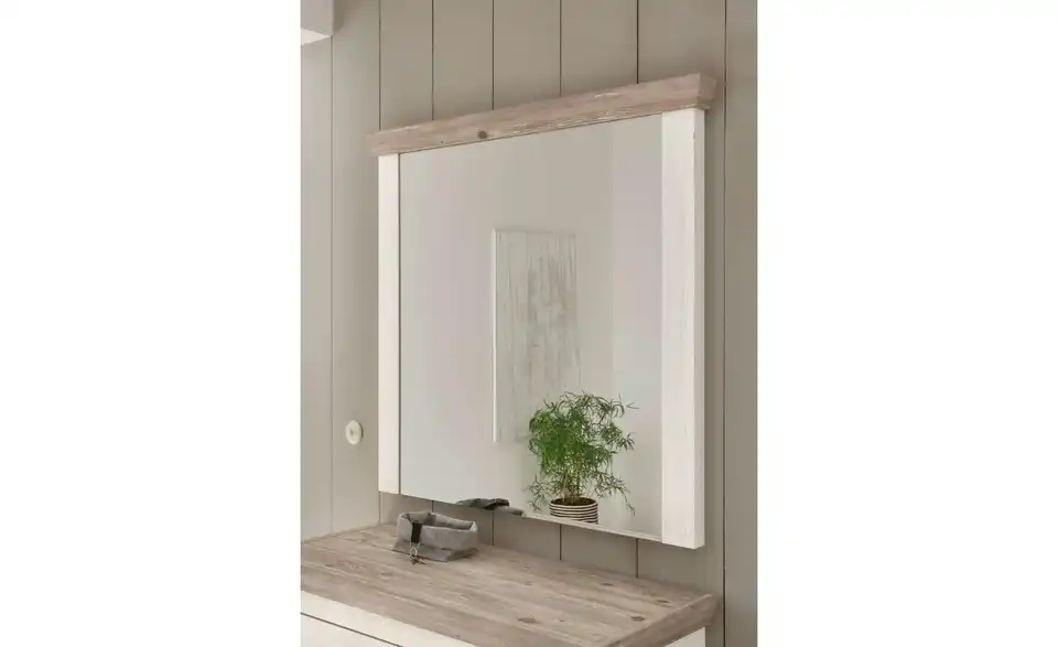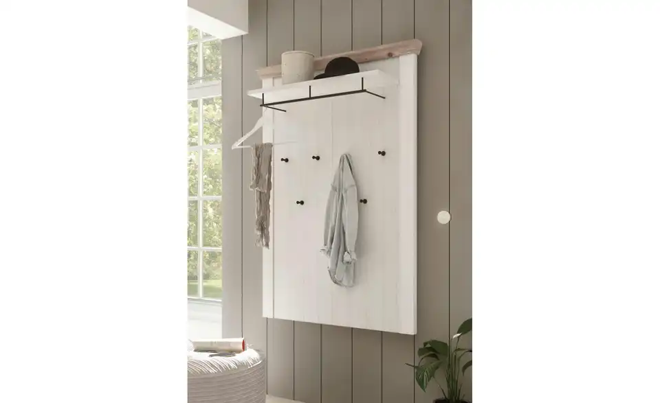 - Lieferumfang / mitgeliefertes ZubehörSchrank B/H/T 107/ 201/ 38 cm; Kommode B/H/T: 107/ 87/ 45 cm; Garderobenpaneel B/H/T: 107/ 153/ 27 cm; Sitzbank B/H/T: 107/ 50/ 45 cm; Wandspiegel B/H/T: 107/ 100/ 8 cm