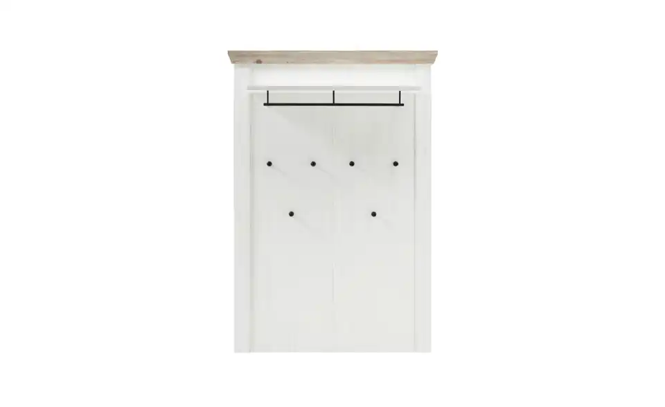 - Lieferumfang / mitgeliefertes ZubehörSchrank B/H/T 73/ 201/ 38 cm; Garderobenpaneel B/H/T: 107/ 153/ 27 cm; Sitzbank B/H/T: 107/ 50/ 45 cm