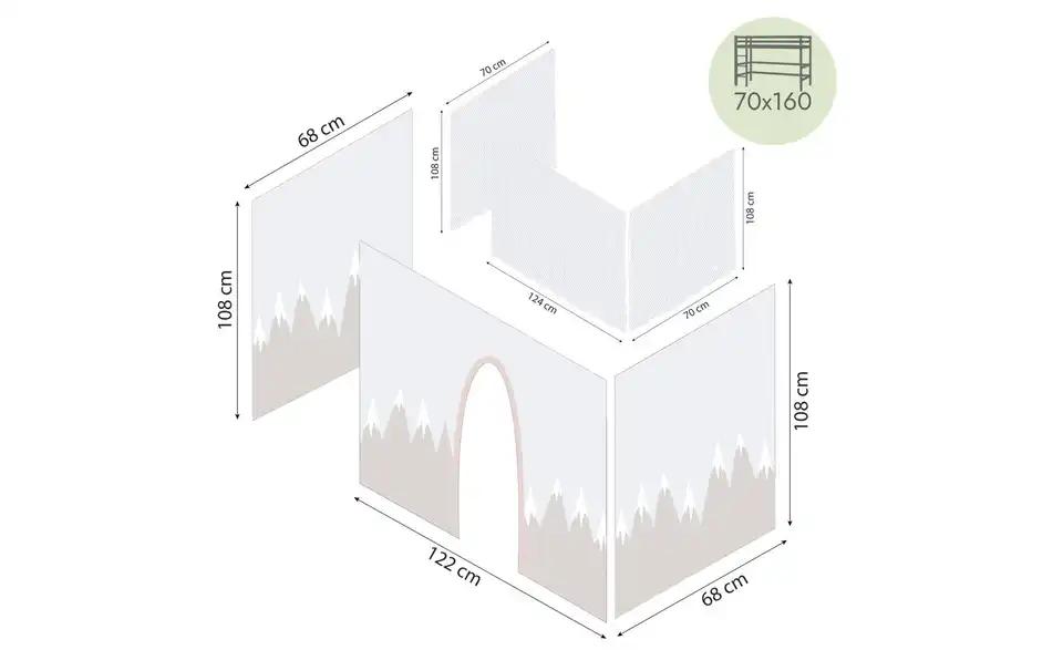 - Lieferumfang / mitgeliefertes ZubehörVorhangset für Hoppekids Mittelhochbetten mit Höhe unter dem Bett ca. 108 cm mit Aufhängung