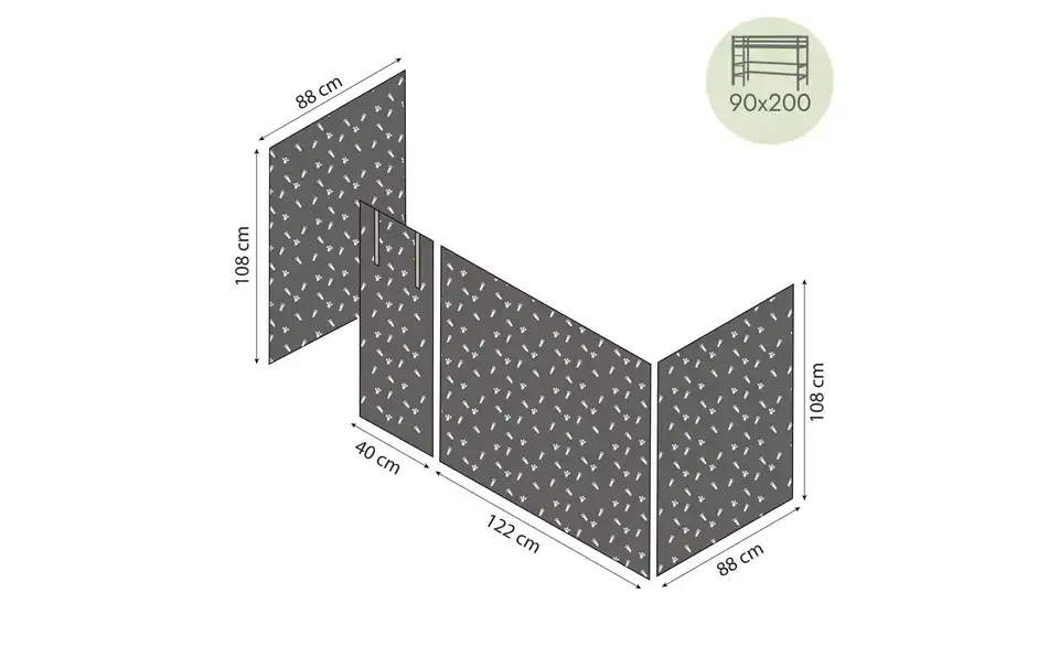 - Lieferumfang / mitgeliefertes ZubehörVorhangset für Hoppekids Mittelhochbetten mit Höhe unter dem Bett ca. 108 cm mit Aufhängung