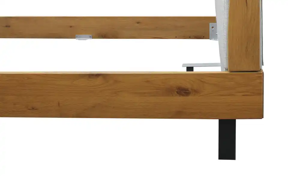 - Mehr zu MaterialBettgestell geöltKopfteil gepolstertKufengestell aus pulverbeschichtetem Stahl