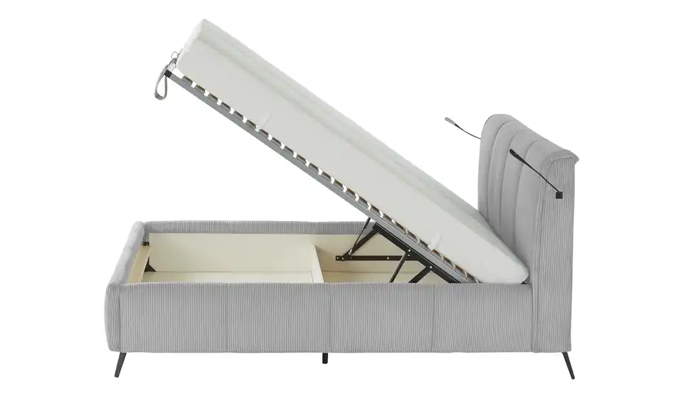- Ausstattung / FunktionBettkasten mit BelüftungBettkasten im Fußteilmit GasdruckfederBeleuchtung