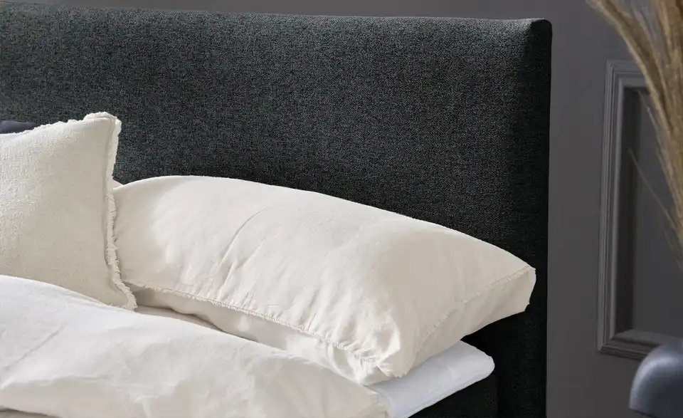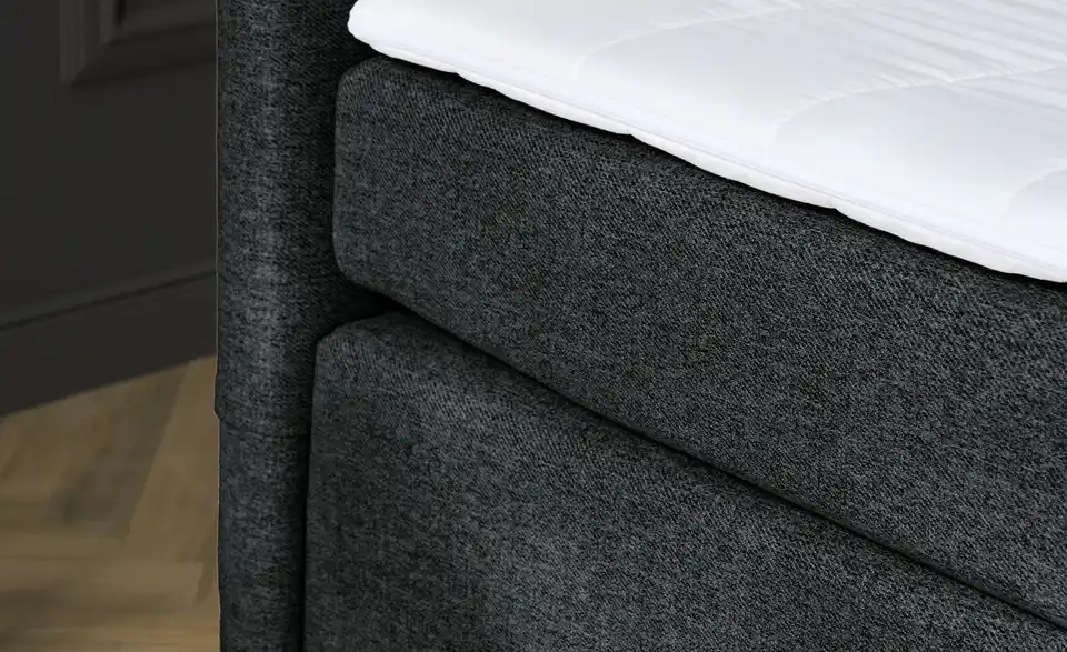 Das Boxspringbett Duke ist eine bequeme Grundlage für erholsame Nächte. Box und Matratze sind mit flächenelastischen Bonellfederkernen ausgestattet. Darauf liegt der drei Zentimeter dicke Topper mit Schaumstoffkern. Der Härtegrad der Matratze ist in H3 angegeben und damit weder zu weich, noch zu fest. Duke hat ein halbhohes, gepolstertes Kopfteil, an das Sie sich beim Lesen anlehnen können. Für den Bezug ist ein unempfindliches Flachgewebe verwendet worden, der sich gut kombinieren lässt.Lieferung & Versand