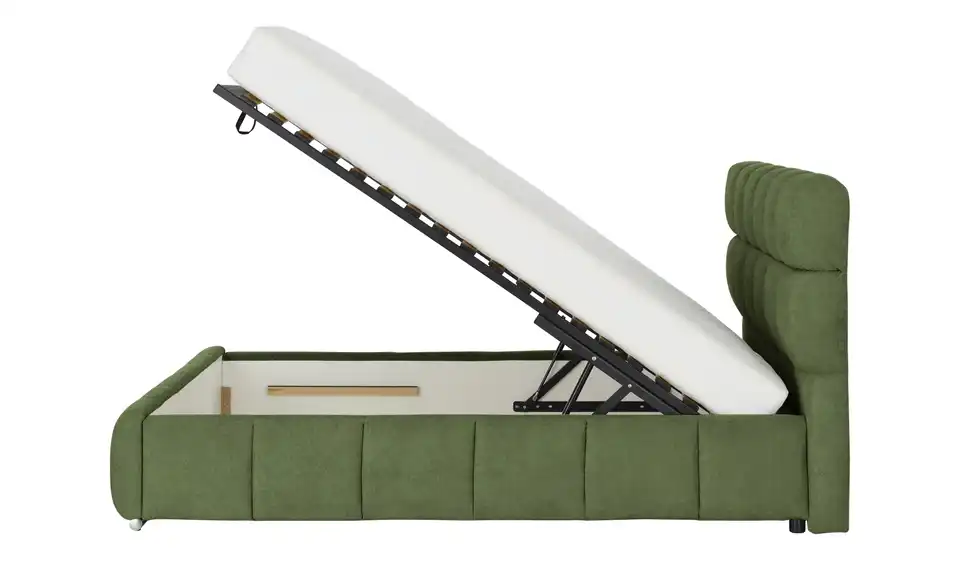 - Ausstattung / FunktionBettkasten mit BelüftungBettkastenöffnung am Fußteilmit Gasdruckfederinnen liegender Bettkasten