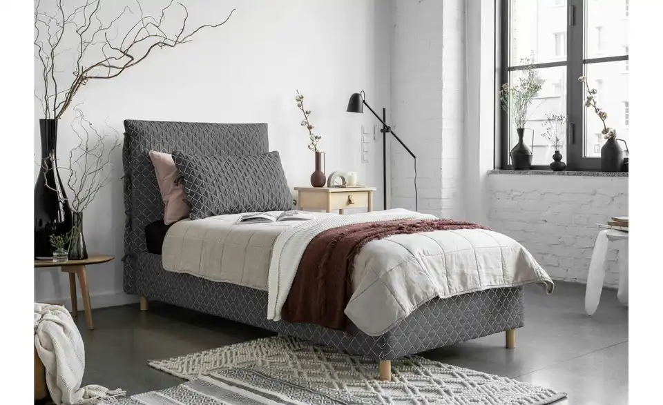 - Lieferumfang / mitgeliefertes ZubehörPolsterbett mit 1 Zierkissen und Lattenrost