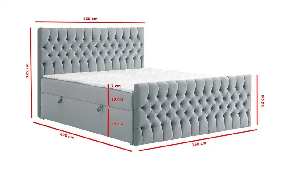 - Lieferumfang / mitgeliefertes ZubehörSilbergraues Polsterbett mit Bettkasten 160x200 cm