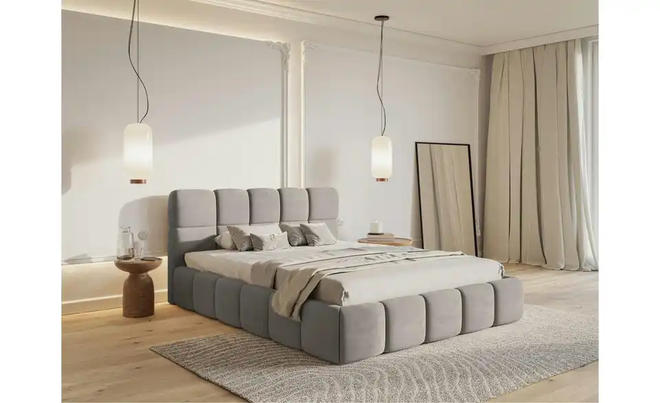 Suchen Sie nach einem Bett, das höchsten Ansprüchen gerecht wird? Das Polsterbett Cloudy vereint elegantes Design, Komfort und praktische Funktionalität in einem Möbelstück. Das Polsterbett überzeugt durch seine harmonische Kombination aus weichen, abgerundeten Formen und modernem Design. Das stilvolle Kopfteil ist in gepolsterte Quadrate unterteilt, die perfekt mit der abgerundeten Basis harmonieren. Der stabile Rahmen sorgt für zuverlässige Unterstützung Ihrer Matratze und ist ein eleganter Blickfang in jedem Schlafzimmer. Unser Tipp: Wählen Sie die Ausführung mit Bettkasten. So können Sie zusätzlichen Stauraum für Bettwäsche und andere Dinge schaffen.Lieferung & Versand