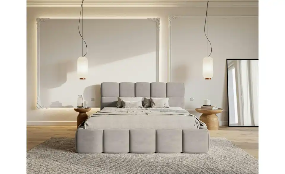 Suchen Sie nach einem Bett, das höchsten Ansprüchen gerecht wird? Das Polsterbett Cloudy vereint elegantes Design, Komfort und praktische Funktionalität in einem Möbelstück. Das Polsterbett überzeugt durch seine harmonische Kombination aus weichen, abgerundeten Formen und modernem Design. Das stilvolle Kopfteil ist in gepolsterte Quadrate unterteilt, die perfekt mit der abgerundeten Basis harmonieren. Der stabile Rahmen sorgt für zuverlässige Unterstützung Ihrer Matratze und ist ein eleganter Blickfang in jedem Schlafzimmer. Unser Tipp: Wählen Sie die Ausführung mit Bettkasten. So können Sie zusätzlichen Stauraum für Bettwäsche und andere Dinge schaffen.Lieferung & Versand