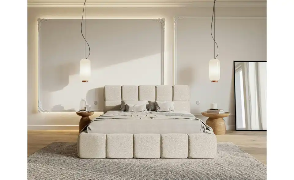 Suchen Sie nach einem Bett, das höchsten Ansprüchen gerecht wird? Das Polsterbett Cloudy vereint elegantes Design, Komfort und praktische Funktionalität in einem Möbelstück. Das Polsterbett überzeugt durch seine harmonische Kombination aus weichen, abgerundeten Formen und modernem Design. Das stilvolle Kopfteil ist in gepolsterte Quadrate unterteilt, die perfekt mit der abgerundeten Basis harmonieren. Der stabile Rahmen sorgt für zuverlässige Unterstützung Ihrer Matratze und ist ein eleganter Blickfang in jedem Schlafzimmer. Unser Tipp: Wählen Sie die Ausführung mit Bettkasten. So können Sie zusätzlichen Stauraum für Bettwäsche und andere Dinge schaffen.Lieferung & Versand