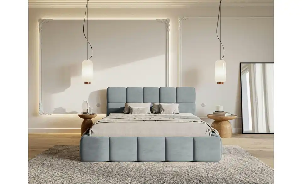 Suchen Sie nach einem Bett, das höchsten Ansprüchen gerecht wird? Das Polsterbett Cloudy vereint elegantes Design, Komfort und praktische Funktionalität in einem Möbelstück. Das Polsterbett überzeugt durch seine harmonische Kombination aus weichen, abgerundeten Formen und modernem Design. Das stilvolle Kopfteil ist in gepolsterte Quadrate unterteilt, die perfekt mit der abgerundeten Basis harmonieren. Der stabile Rahmen sorgt für zuverlässige Unterstützung Ihrer Matratze und ist ein eleganter Blickfang in jedem Schlafzimmer. Unser Tipp: Wählen Sie die Ausführung mit Bettkasten. So können Sie zusätzlichen Stauraum für Bettwäsche und andere Dinge schaffen.Lieferung & Versand