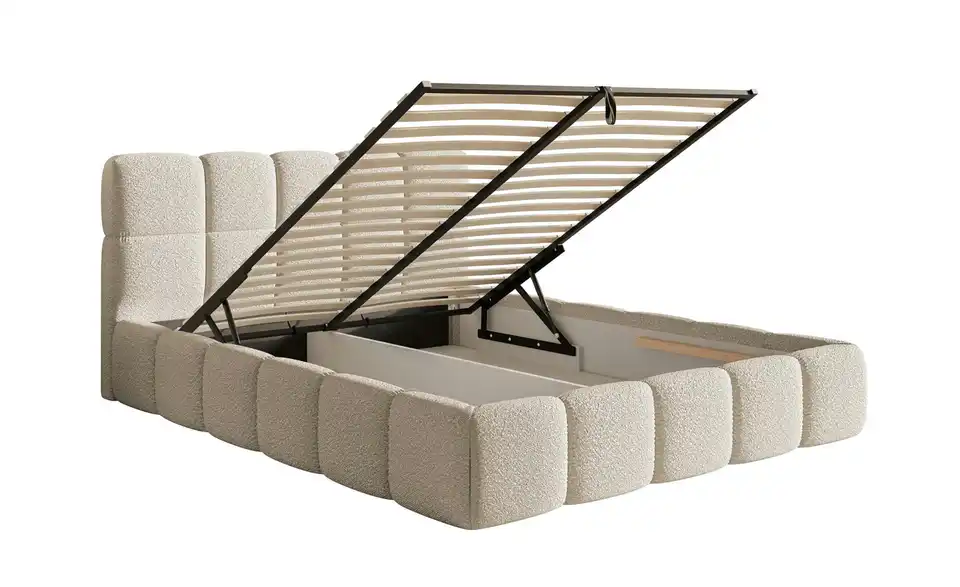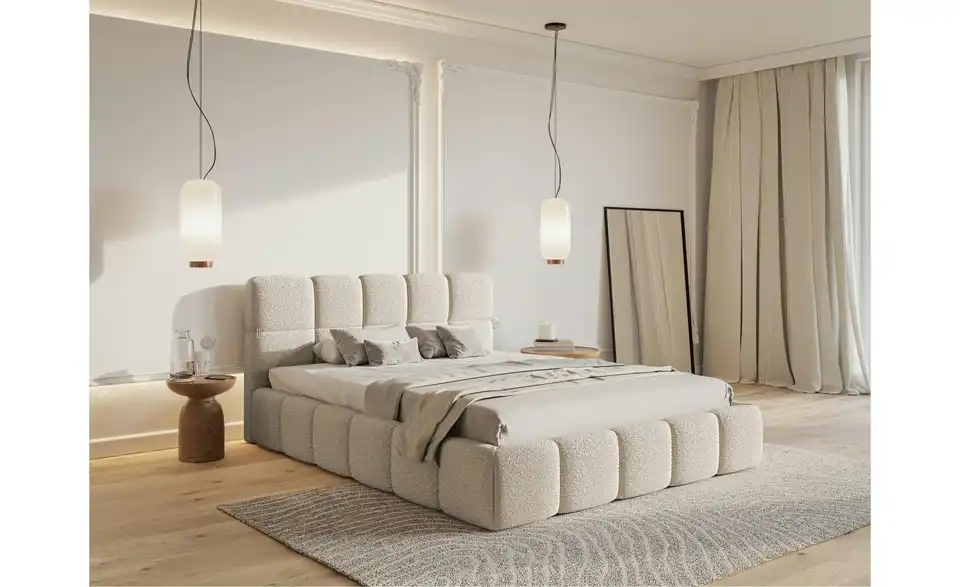 Suchen Sie nach einem Bett, das höchsten Ansprüchen gerecht wird? Das Polsterbett Cloudy vereint elegantes Design, Komfort und praktische Funktionalität in einem Möbelstück. Das Polsterbett überzeugt durch seine harmonische Kombination aus weichen, abgerundeten Formen und modernem Design. Das stilvolle Kopfteil ist in gepolsterte Quadrate unterteilt, die perfekt mit der abgerundeten Basis harmonieren. Der stabile Rahmen sorgt für zuverlässige Unterstützung Ihrer Matratze und ist ein eleganter Blickfang in jedem Schlafzimmer. Unser Tipp: Wählen Sie die Ausführung mit Bettkasten. So können Sie zusätzlichen Stauraum für Bettwäsche und andere Dinge schaffen.Lieferung & Versand