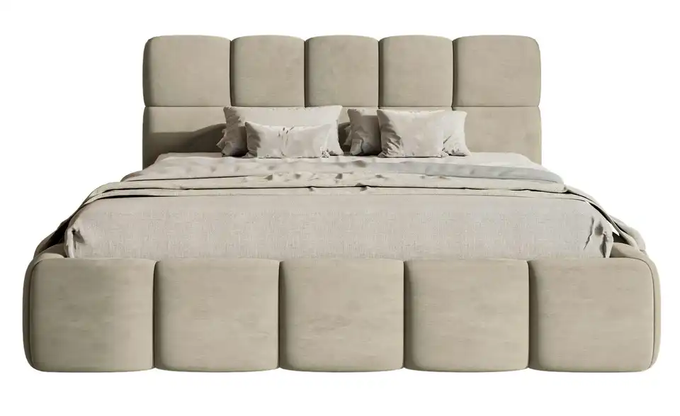 Suchen Sie nach einem Bett, das höchsten Ansprüchen gerecht wird? Das Polsterbett Cloudy vereint elegantes Design, Komfort und praktische Funktionalität in einem Möbelstück. Das Polsterbett überzeugt durch seine harmonische Kombination aus weichen, abgerundeten Formen und modernem Design. Das stilvolle Kopfteil ist in gepolsterte Quadrate unterteilt, die perfekt mit der abgerundeten Basis harmonieren. Der stabile Rahmen sorgt für zuverlässige Unterstützung Ihrer Matratze und ist ein eleganter Blickfang in jedem Schlafzimmer. Unser Tipp: Wählen Sie die Ausführung mit Bettkasten. So können Sie zusätzlichen Stauraum für Bettwäsche und andere Dinge schaffen.Lieferung & Versand