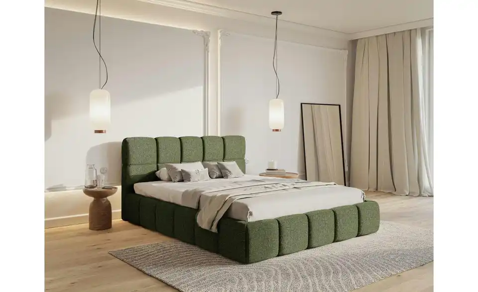 Suchen Sie nach einem Bett, das höchsten Ansprüchen gerecht wird? Das Polsterbett Cloudy vereint elegantes Design, Komfort und praktische Funktionalität in einem Möbelstück. Das Polsterbett überzeugt durch seine harmonische Kombination aus weichen, abgerundeten Formen und modernem Design. Das stilvolle Kopfteil ist in gepolsterte Quadrate unterteilt, die perfekt mit der abgerundeten Basis harmonieren. Der stabile Rahmen sorgt für zuverlässige Unterstützung Ihrer Matratze und ist ein eleganter Blickfang in jedem Schlafzimmer. Unser Tipp: Wählen Sie die Ausführung mit Bettkasten. So können Sie zusätzlichen Stauraum für Bettwäsche und andere Dinge schaffen.Lieferung & Versand