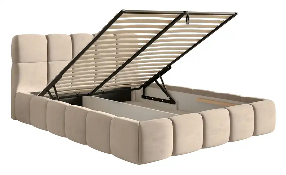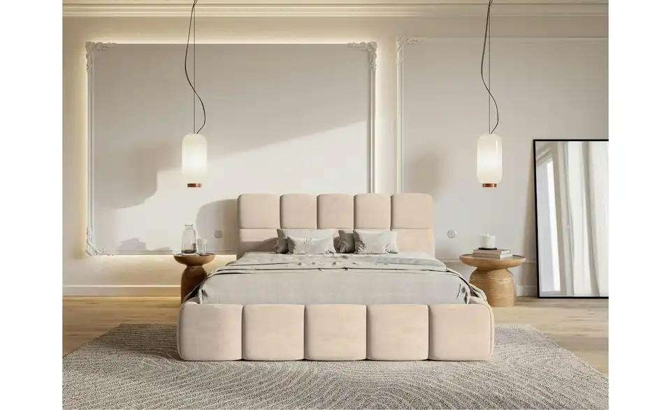Suchen Sie nach einem Bett, das höchsten Ansprüchen gerecht wird? Das Polsterbett Cloudy vereint elegantes Design, Komfort und praktische Funktionalität in einem Möbelstück. Das Polsterbett überzeugt durch seine harmonische Kombination aus weichen, abgerundeten Formen und modernem Design. Das stilvolle Kopfteil ist in gepolsterte Quadrate unterteilt, die perfekt mit der abgerundeten Basis harmonieren. Der stabile Rahmen sorgt für zuverlässige Unterstützung Ihrer Matratze und ist ein eleganter Blickfang in jedem Schlafzimmer. Unser Tipp: Wählen Sie die Ausführung mit Bettkasten. So können Sie zusätzlichen Stauraum für Bettwäsche und andere Dinge schaffen.Lieferung & Versand