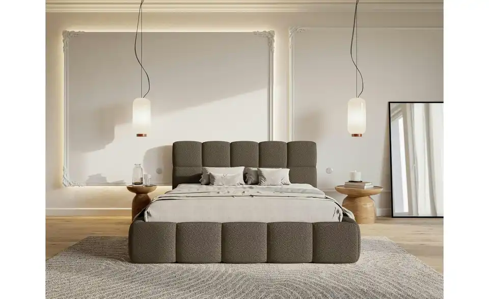 Suchen Sie nach einem Bett, das höchsten Ansprüchen gerecht wird? Das Polsterbett Cloudy vereint elegantes Design, Komfort und praktische Funktionalität in einem Möbelstück. Das Polsterbett überzeugt durch seine harmonische Kombination aus weichen, abgerundeten Formen und modernem Design. Das stilvolle Kopfteil ist in gepolsterte Quadrate unterteilt, die perfekt mit der abgerundeten Basis harmonieren. Der stabile Rahmen sorgt für zuverlässige Unterstützung Ihrer Matratze und ist ein eleganter Blickfang in jedem Schlafzimmer. Unser Tipp: Wählen Sie die Ausführung mit Bettkasten. So können Sie zusätzlichen Stauraum für Bettwäsche und andere Dinge schaffen.Lieferung & Versand