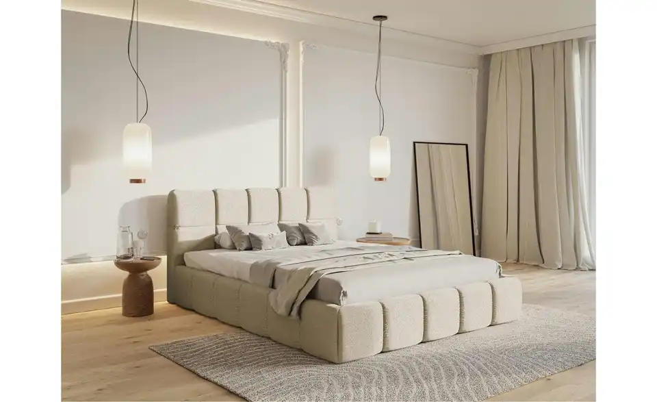 Suchen Sie nach einem Bett, das höchsten Ansprüchen gerecht wird? Das Polsterbett Cloudy vereint elegantes Design, Komfort und praktische Funktionalität in einem Möbelstück. Das Polsterbett überzeugt durch seine harmonische Kombination aus weichen, abgerundeten Formen und modernem Design. Das stilvolle Kopfteil ist in gepolsterte Quadrate unterteilt, die perfekt mit der abgerundeten Basis harmonieren. Der stabile Rahmen sorgt für zuverlässige Unterstützung Ihrer Matratze und ist ein eleganter Blickfang in jedem Schlafzimmer. Unser Tipp: Wählen Sie die Ausführung mit Bettkasten. So können Sie zusätzlichen Stauraum für Bettwäsche und andere Dinge schaffen.Lieferung & Versand