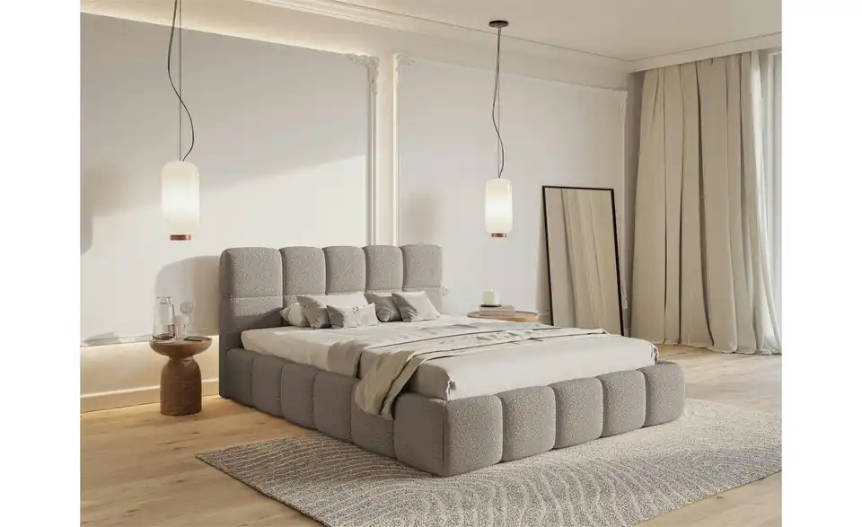 Suchen Sie nach einem Bett, das höchsten Ansprüchen gerecht wird? Das Polsterbett Cloudy vereint elegantes Design, Komfort und praktische Funktionalität in einem Möbelstück. Das Polsterbett überzeugt durch seine harmonische Kombination aus weichen, abgerundeten Formen und modernem Design. Das stilvolle Kopfteil ist in gepolsterte Quadrate unterteilt, die perfekt mit der abgerundeten Basis harmonieren. Der stabile Rahmen sorgt für zuverlässige Unterstützung Ihrer Matratze und ist ein eleganter Blickfang in jedem Schlafzimmer. Unser Tipp: Wählen Sie die Ausführung mit Bettkasten. So können Sie zusätzlichen Stauraum für Bettwäsche und andere Dinge schaffen.Lieferung & Versand