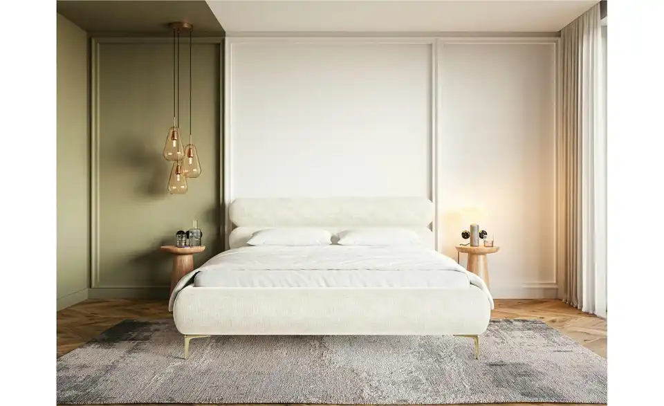 Das Polsterbett Roule ist die perfekte Kombination aus stilvollem Design, Komfort und Funktionalität – ein Highlight für Ihr Schlafzimmer. Das markante Kopfteil in Form von zwei horizontalen Ovalen bietet eine bequeme Stütze beim Lesen oder Entspannen. Die 15 cm hohen Designerfüße verleihen dem Bett eine schwebende Leichtigkeit und schaffen ein luftiges Raumgefühl. Der im Lieferumfang enthaltene Rollrost aus Holz sorgt für Stabilität und eine solide Basis für Ihre Matratze. Der hochwertige Chenille-Stoff Perfect Harmony von Davis besticht durch seine weiche Haptik, hohe Strapazierfähigkeit und schwer entflammbare Eigenschaften. Das Bett fügt sich nahtlos in moderne und minimalistische Einrichtungsstile ein.Lieferung & Versand
