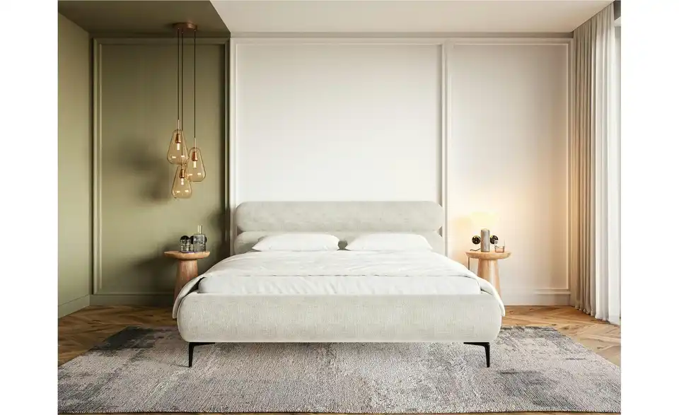 Das Polsterbett Roule ist die perfekte Kombination aus stilvollem Design, Komfort und Funktionalität – ein Highlight für Ihr Schlafzimmer. Das markante Kopfteil in Form von zwei horizontalen Ovalen bietet eine bequeme Stütze beim Lesen oder Entspannen. Die 15 cm hohen Designerfüße verleihen dem Bett eine schwebende Leichtigkeit und schaffen ein luftiges Raumgefühl. Der im Lieferumfang enthaltene Rollrost aus Holz sorgt für Stabilität und eine solide Basis für Ihre Matratze. Der hochwertige Chenille-Stoff Perfect Harmony von Davis besticht durch seine weiche Haptik, hohe Strapazierfähigkeit und schwer entflammbare Eigenschaften. Das Bett fügt sich nahtlos in moderne und minimalistische Einrichtungsstile ein.Lieferung & Versand