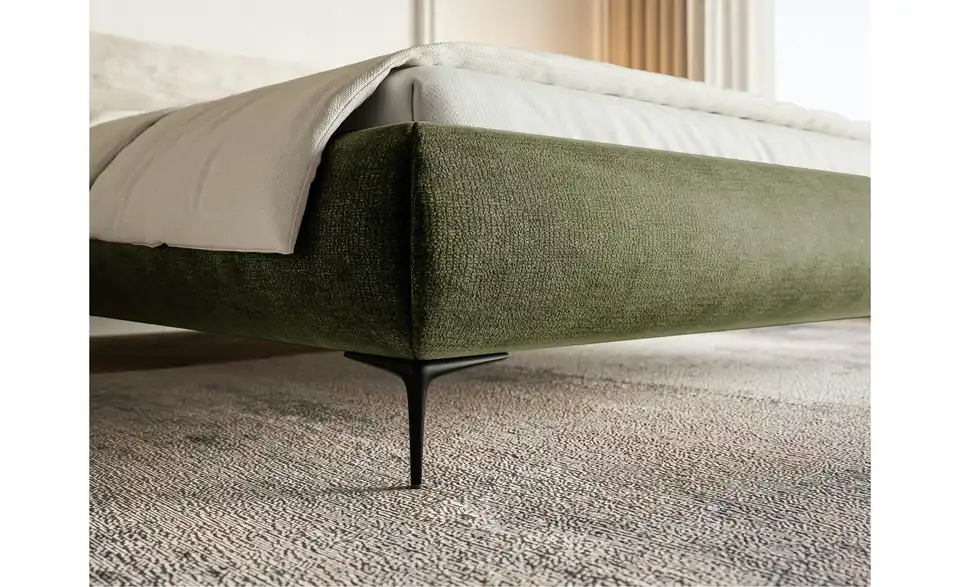 Das Polsterbett Roule ist die perfekte Kombination aus stilvollem Design, Komfort und Funktionalität – ein Highlight für Ihr Schlafzimmer. Das markante Kopfteil in Form von zwei horizontalen Ovalen bietet eine bequeme Stütze beim Lesen oder Entspannen. Die 15 cm hohen Designerfüße verleihen dem Bett eine schwebende Leichtigkeit und schaffen ein luftiges Raumgefühl. Der im Lieferumfang enthaltene Rollrost aus Holz sorgt für Stabilität und eine solide Basis für Ihre Matratze. Der hochwertige Chenille-Stoff Perfect Harmony von Davis besticht durch seine weiche Haptik, hohe Strapazierfähigkeit und schwer entflammbare Eigenschaften. Das Bett fügt sich nahtlos in moderne und minimalistische Einrichtungsstile ein.Lieferung & Versand
