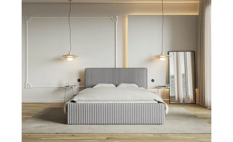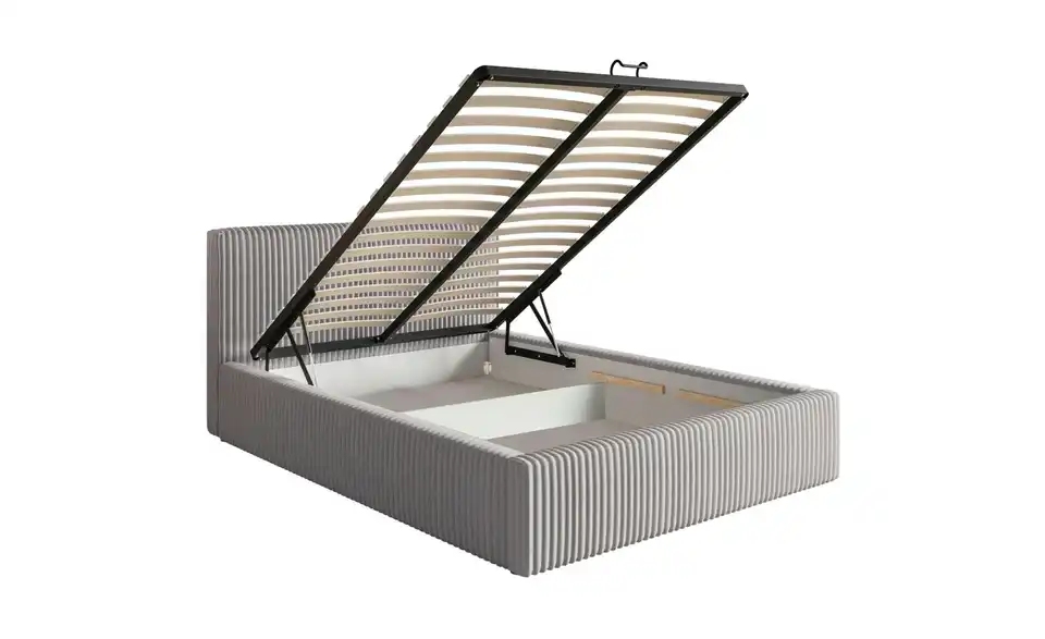 Das Polsterbett Tilio ist eine perfekte Wahl für alle, die minimalistische Looks, aber maximale Funktionalität lieben. Dank seines einfachen, geradlinigen Designs und des rundum gepolsterten Bettrahmens sieht es super schick und einladend aus und schafft dabei eine saubere, beruhigende Atmosphäre im Schlafzimmer. Der Breitcord-Bezug mit grober Rippenstruktur sorgt für ein angenehmes Wärmegefühl und verleiht dem Raum ein gemütliches Flair. Das hohe, kuschelige Betthaupt lädt zum Anlehnen und Entspannen ein, auch beim Lesen oder Fernsehen. Auch in Sachen Stauraum lässt Tilio keine Wünsche offen: Ihre Bettwäsche und Co., aber auch Wintermäntel oder Hobbyartikel lassen sich platzsparend und unauffällig im zweigeteilten Bettkasten unter dem hochklappbaren Lattenrost lagern. Eine praktische Trennwand teilt den Bettkasten in zwei Bereiche und sorgt somit für eine optimierte, organisierte Aufbewahrung.Lieferung & Versand