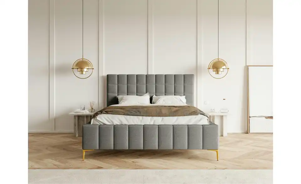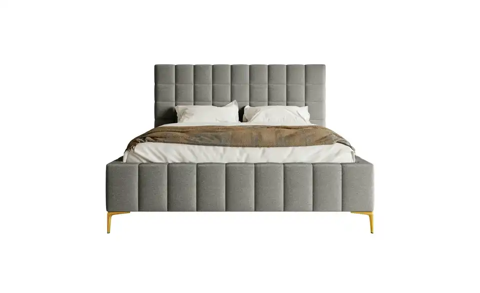 Das Polsterbett Szejlo vereint Stil, Komfort und praktische Funktionen. Mit seinem edlen Design, geprägt von rechteckigen Steppungen am weichen Kopfteil und Bettrahmen, bringt das Doppelbett Szejlo Eleganz in Ihr Schlafzimmer. Die 15 cm hohen, goldfarbenen Füße verleihen dem Bett eine leichte und schwebende Optik, während der robuste Bezug aus Chenille-Stoff mit seiner geflochtenen Struktur langlebig, lichtbeständig und abriebfest ist. Das Bett bietet nicht nur Design, sondern auch Funktionalität: Der geräumige Bettkasten ermöglicht eine aufgeräumte Aufbewahrung von Bettwäsche, Decken und mehr. Dank der Gasdruckfedern lässt sich der Metall-Lattenrost mühelos anheben, sodass der Stauraum leicht zugänglich ist. Mit Szejlo holen Sie sich modernes Design und hohen Komfort in Ihr Schlafzimmer – perfekt für ein glamouröses Ambiente.Lieferung & Versand