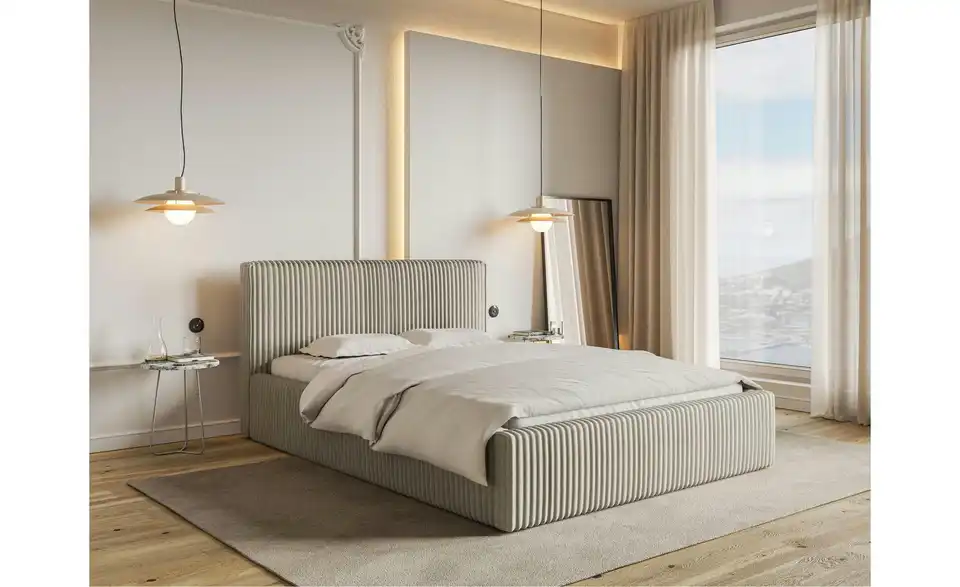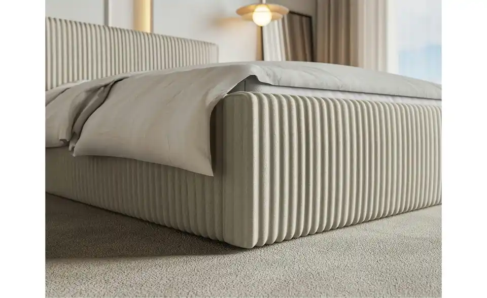 Das Polsterbett Tilio ist eine perfekte Wahl für alle, die minimalistische Looks, aber maximale Funktionalität lieben. Dank seines einfachen, geradlinigen Designs und des rundum gepolsterten Bettrahmens sieht es super schick und einladend aus und schafft dabei eine saubere, beruhigende Atmosphäre im Schlafzimmer. Der Breitcord-Bezug mit grober Rippenstruktur sorgt für ein angenehmes Wärmegefühl und verleiht dem Raum ein gemütliches Flair. Das hohe, kuschelige Betthaupt lädt zum Anlehnen und Entspannen ein, auch beim Lesen oder Fernsehen. Auch in Sachen Stauraum lässt Tilio keine Wünsche offen: Ihre Bettwäsche und Co., aber auch Wintermäntel oder Hobbyartikel lassen sich platzsparend und unauffällig im zweigeteilten Bettkasten unter dem hochklappbaren Lattenrost lagern. Eine praktische Trennwand teilt den Bettkasten in zwei Bereiche und sorgt somit für eine optimierte, organisierte Aufbewahrung.Lieferung & Versand