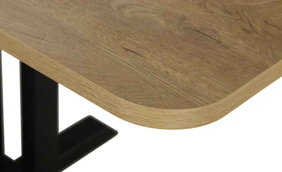 - Mehr zu MaterialTischplatte aus Holzwerkstoff beschichtet in Eiche Endgrain ClassicGestell aus Metall in Schwarz matt