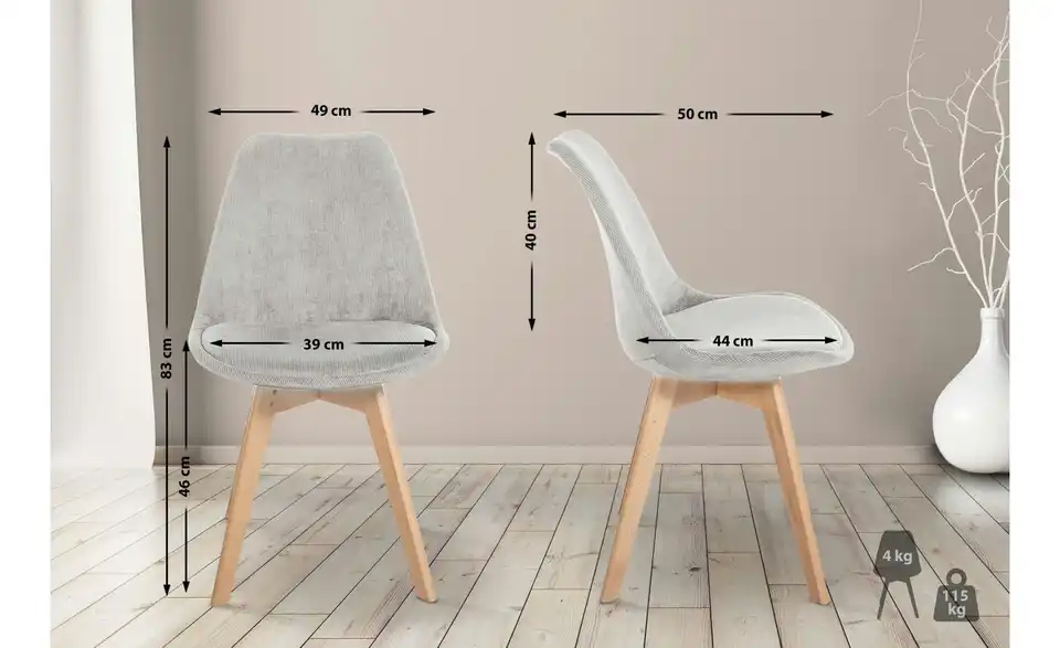 - entspricht DINDIN EN 12520 - Stuhl erfüllt die Anforderungen (Festigkeit, Dauerhaltbarkeit, Sicherheit) an Sitzmöbel für den Wohnbereich.