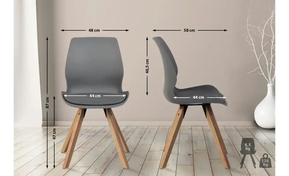 DIN EN 12520 - Stuhl erfüllt die Anforderungen (Festigkeit, Dauerhaltbarkeit, Sicherheit) an Sitzmöbel für den Wohnbereich.