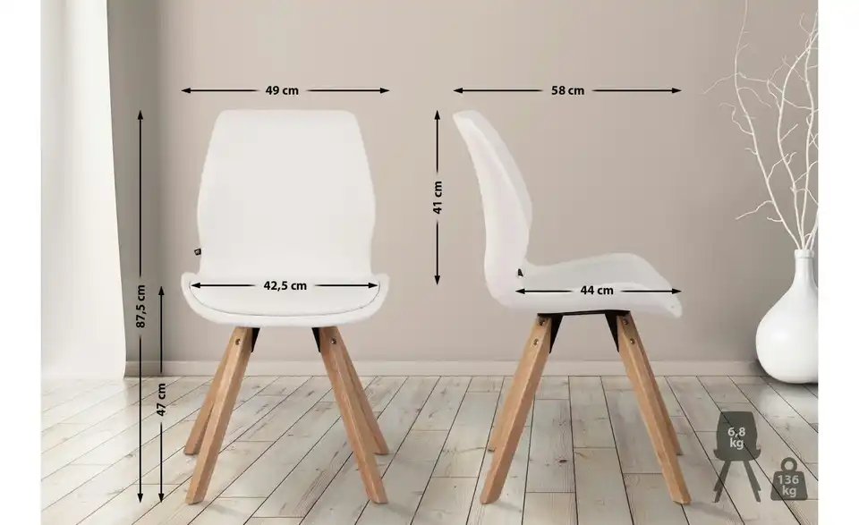 - entspricht DINDIN EN 12520 - Stuhl erfüllt die Anforderungen (Festigkeit, Dauerhaltbarkeit, Sicherheit) an Sitzmöbel für den Wohnbereich.