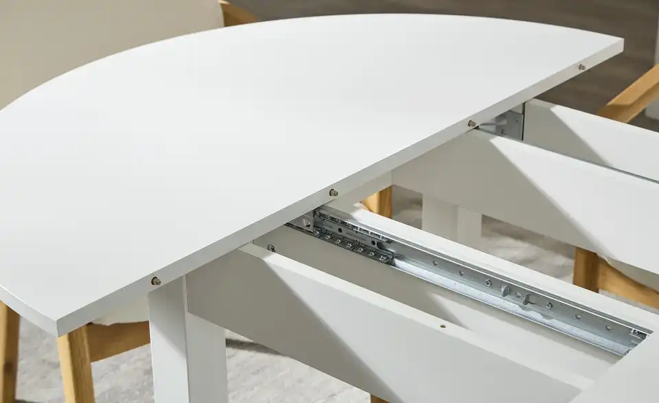 Dieser zeitlose, pflegeleichte Tisch passt problemlos zu den meisten Einrichtungsstilen. Bis zu vier Personen finden hier bequem Platz. Ziehen Sie die beiden äußeren Platten ganz leicht auseinander und legen die Erweiterungsplatte mittig ein: Schon steht Ihnen mehr Platz zur Verfügung.Lieferung & Versand