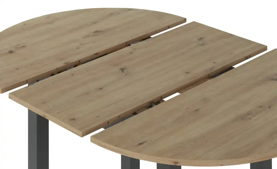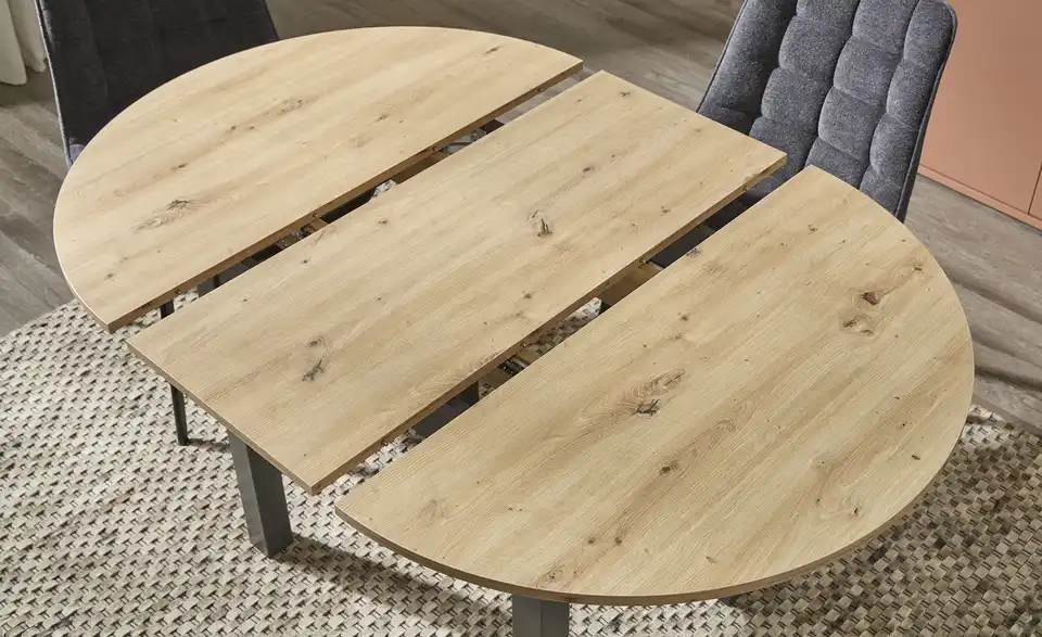 Dieser zeitlose, pflegeleichte Tisch passt problemlos zu den meisten Einrichtungsstilen. Bis zu vier Personen finden hier bequem Platz. Ziehen Sie die beiden äußeren Platten ganz leicht auseinander und legen die Erweiterungsplatte mittig ein: Schon steht Ihnen mehr Platz zur Verfügung.
