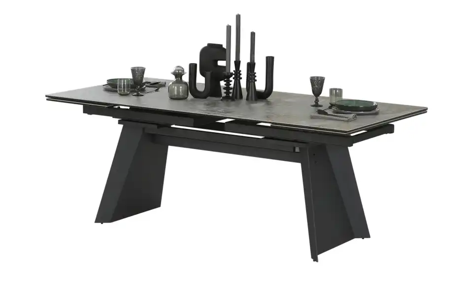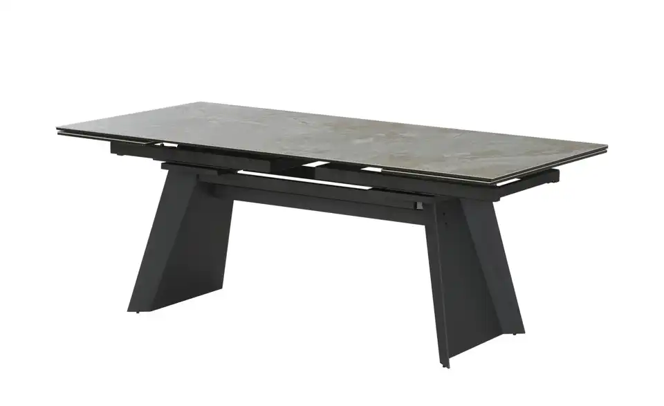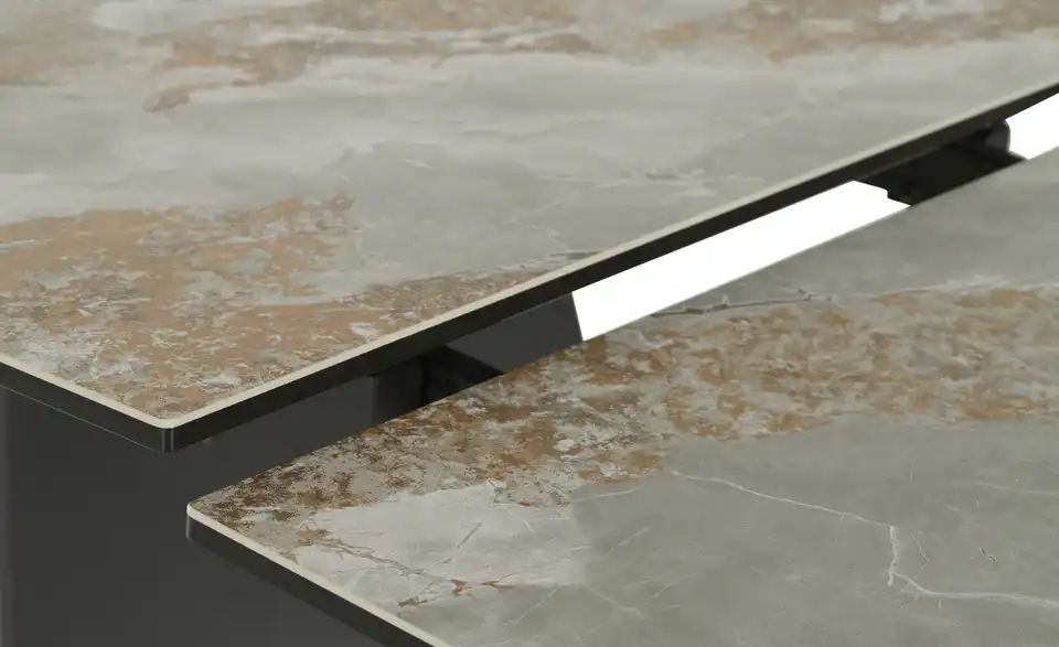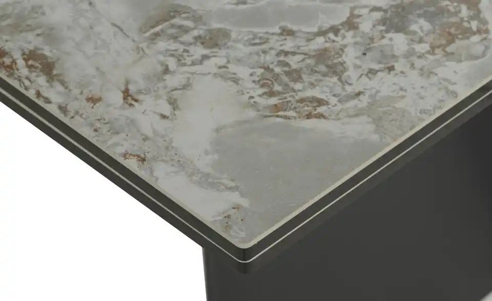 - Mehr zu MaterialTischplatte aus Keramik/Sicherheitsglas in Grau marmoriertGestell aus Metall in Schwarz matt lackiert