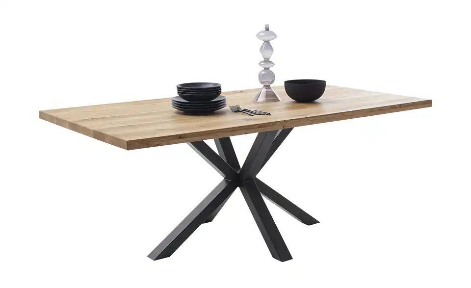 - Mehr zu MaterialTischplatte aus Massivholz in Wildeiche geölt mit durchgehender Lamelle
