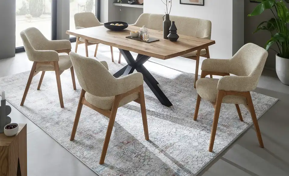 - Mehr zu MaterialTischplatte aus Massivholz in Wildeiche geölt mit durchgehender Lamelle