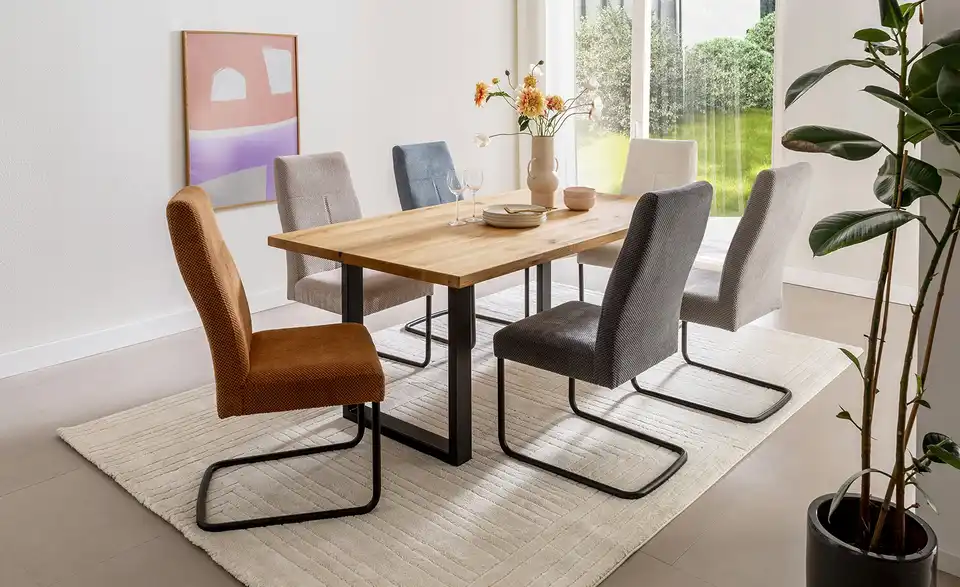 - Mehr zu MaterialTischplatte aus Massivholz in Wildeiche geölt mit durchgehender Lamelle