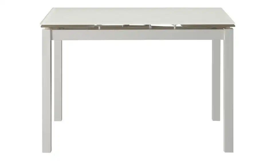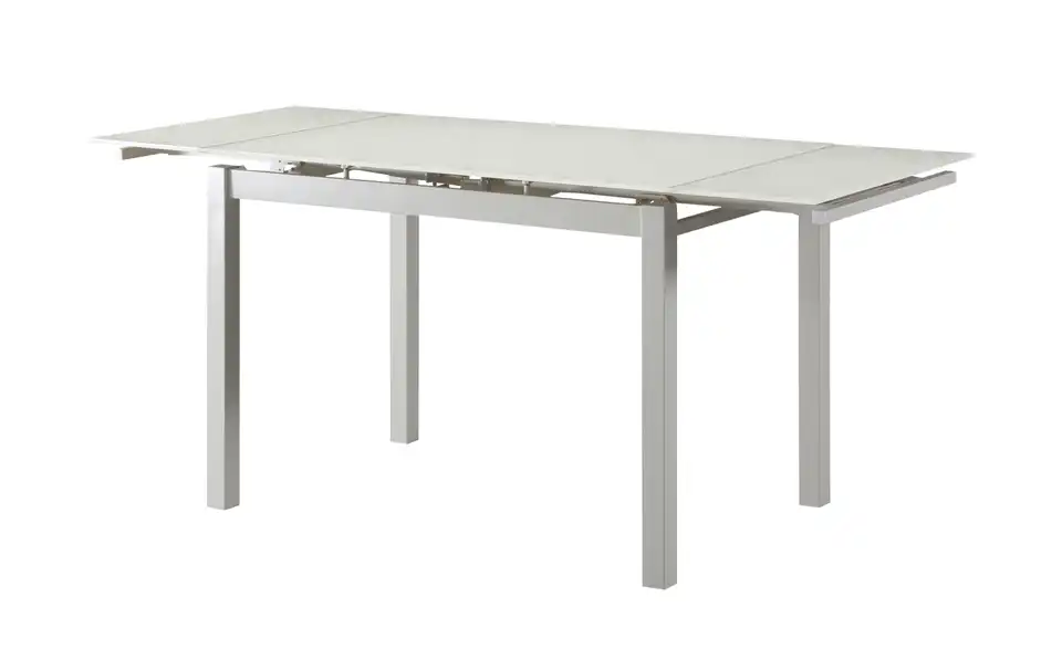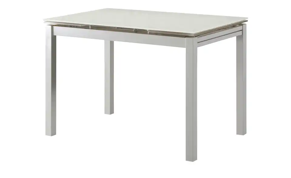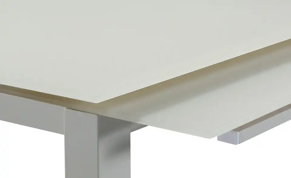 Der Materialmix aus Glas und Metall lässt den Esstisch Tim modern und extravagant wirken. Das Gestell besteht aus Metall, welches alufarben lackiert wurde. Die Tischplatte besteht aus Glas. Das macht sie besonders pflegeleicht, denn Flecken lassen sich ganz einfach mit einem feuchten Tuch entfernen, ohne dauerhafte Spuren zu hinterlassen. Die Unterseite der Glasplatte ist weiß lackiert. Die Farbe schimmert durch das Glas hindurch, was eine besondere Optik entstehen lässt. Bei Bedarf können Sie Tim einfach auf zirka 170 Zentimeter verlängern. Möglich machen das die beiden sogenannten Vorkopfauszüge, die sich an den beiden Tischenden befinden.Lieferung & Versand