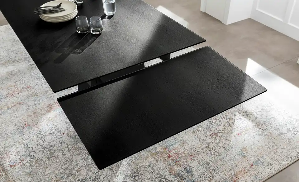 - Mehr zu MaterialTischplatte aus satiniertem Sicherheitsglas in SchwarzGestell aus Metall in Schwarz matt lackiert