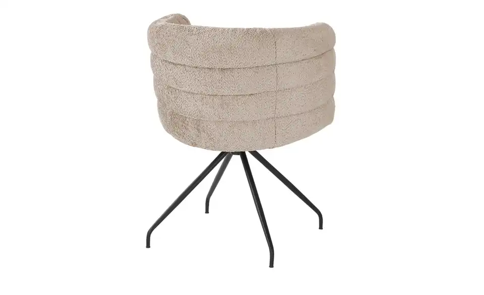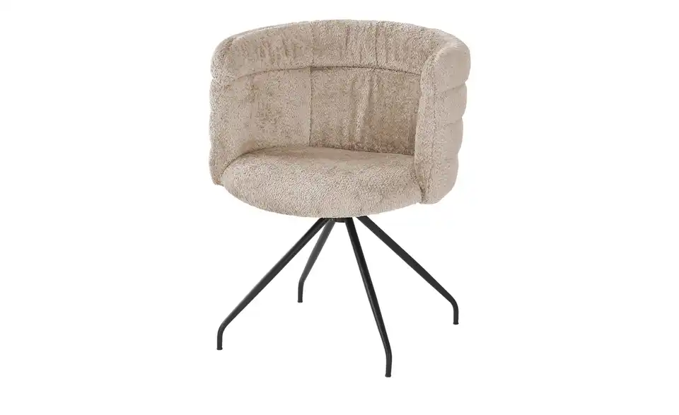 Dieser Markenstuhl von Jette Home kombiniert schwarzes, robustes Metall und kuschelweichen Chenillestoff. Die gebogene Rückenlehne erinnert an einen Cocktailsessel und wird durch eine attraktive Längssteppung akzentuiert. Der markante Stuhl passt zu diversen Esstischen und kann, richtig kombiniert, in verschiedenen Räumen zum Einsatz kommen.bewusst wohnen