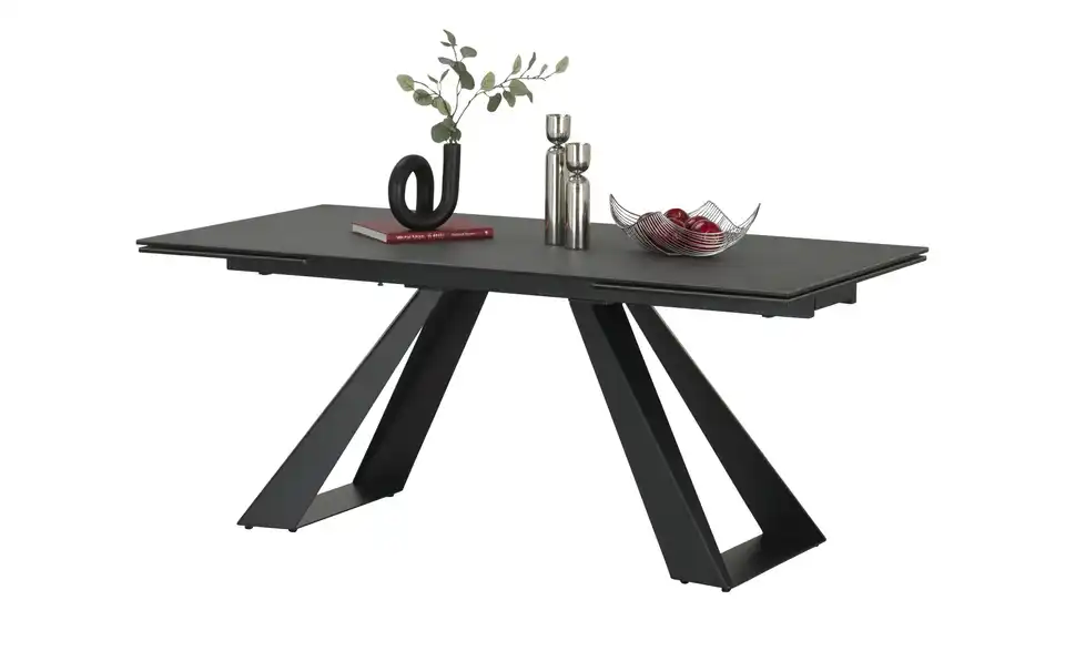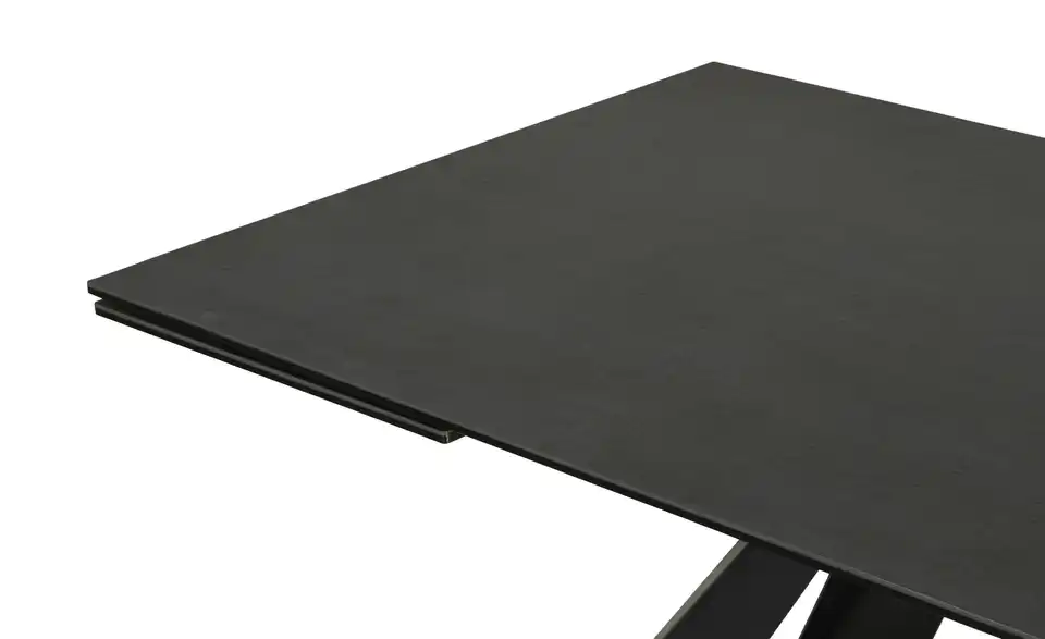 - Mehr zu MaterialTischplatte aus Keramik (0,3 cm) und Sicherheitsglas (0,8 cm)Gestell aus Metall in Schwarz matt lackiert