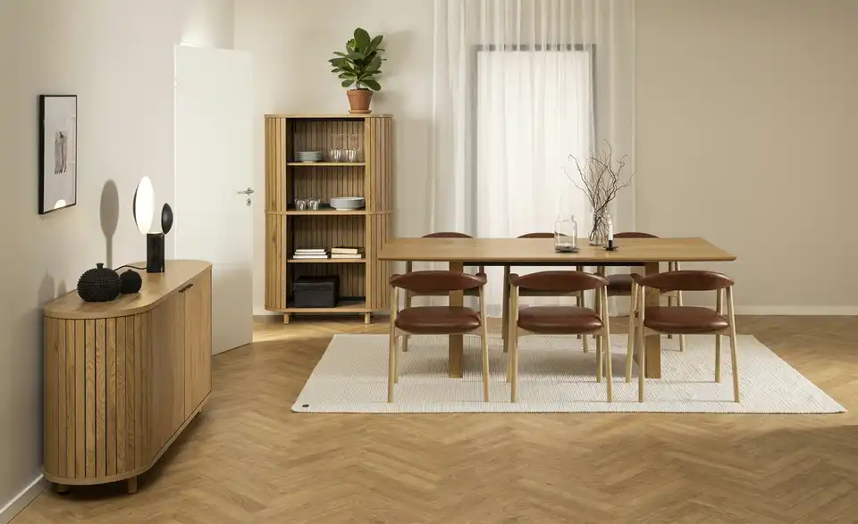 - Material Sitz / RückenlehneMassivholz gepolstert und bezogen