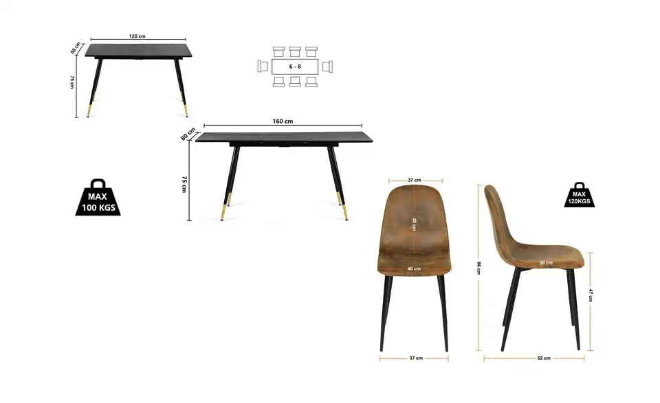 - Lieferumfang / mitgeliefertes Zubehör1 Tisch, 4 Stühle