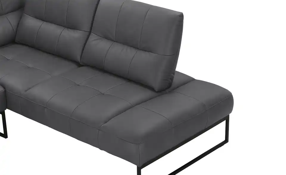 Das Ecksofa 9360 verbindet schwarze Metallkufen und hochwertige Lederpolster zu einem modernen Look im Loft-Design. Die rechteckig abgesteppten Polster geben dem Ganzen eine kubistische Note. Machen Sie es sich bequem und klappen Sie bei Bedarf die Armlehne ganz einfach hoch. So genießen Sie gemütliche Stunden mit Freunden und Familie. Entscheiden Sie sich für die erweiterte Funktion und erhöhen Sie den Komfort mit der Sitztiefenverstellung. Dank dieser können Sie pro Sitzbereich die Rückenlehne nach vorne oder hinten verschieben. Polster gefertigt im bayrischen Taufkirchen: Von Menschen für Menschen. Die hochwertigen Funktionsmöbel der Marke himolla besitzen durchdachte Verstellfunktionen und begleiten Sie ein ganzes Möbelleben lang.Lieferung & Versand