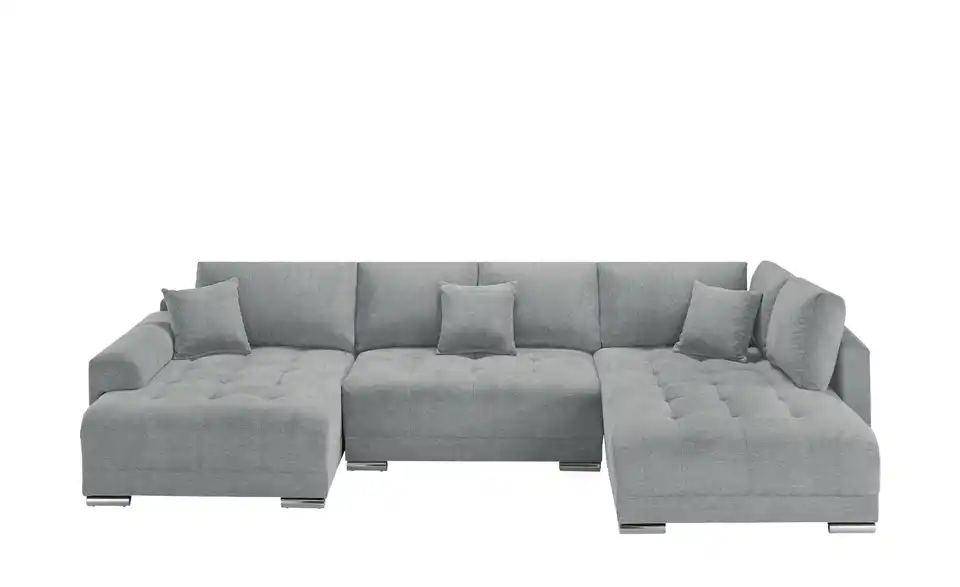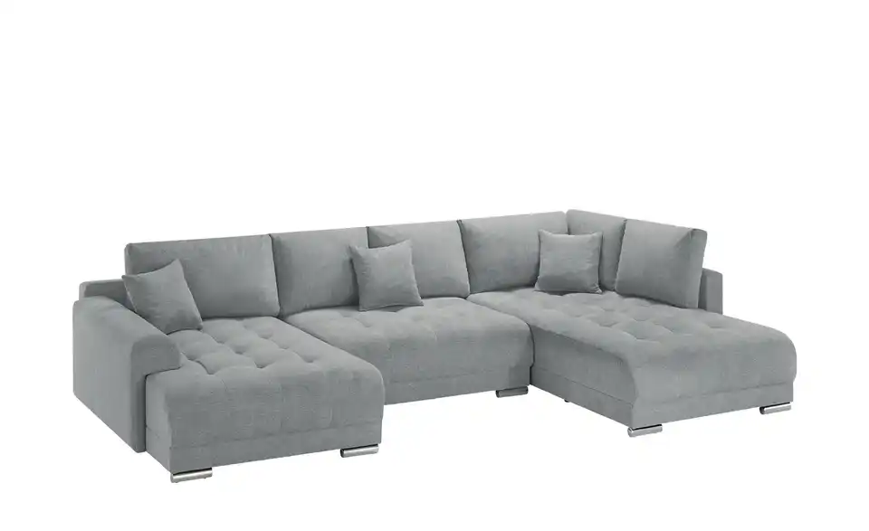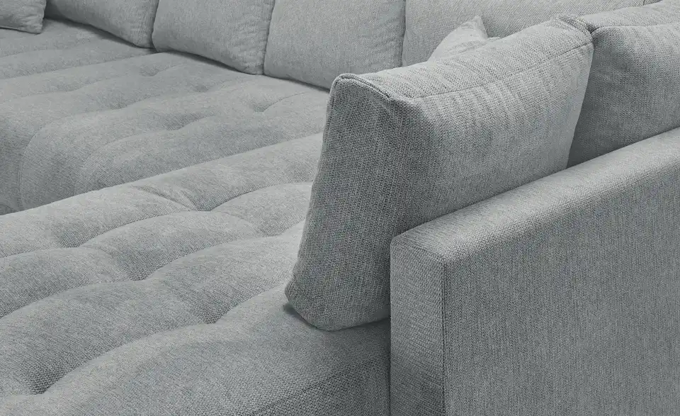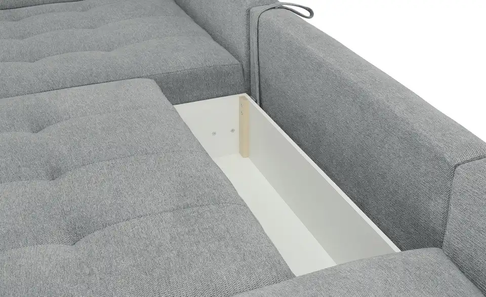 Richtig viel Platz für Freunde und Familie: Diese Wohnlandschaft überzeugt mit zwei einladenden Ottomanen und einer praktischen Schlaffunktion. Sitzen Sie zur Familienfeier bequem zusammen oder genießen Sie in großer Runde einen Filmeabend mit Freunden. Platz gibt es hier genug. Und wenn es doch etwas länger wird, können Sie mit nur wenigen Griffen den Mittelteil umklappen und zu einer Liegefläche umfunktionieren. Dann finden zwei Übernachtungsgäste problemlos Platz. Das dazugehörige Bettzeug lässt sich außerdem im geräumigen Bettkasten unter der Sitzfläche verstauen.Lieferung & Versand
